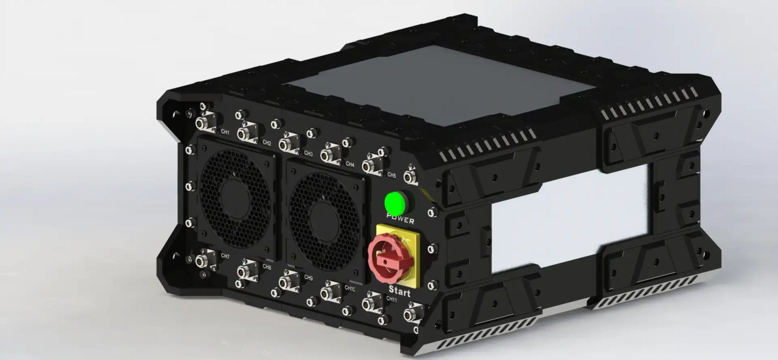 High-power interference signal broadband coverage, continuous interference and shielding of all conventional wireless communication signals between 20~6000MHz; Modular integration of various frequency bands, 6~24 modules can be arbitrarily combined and matched; It has remote control function, supports multi-vehicle remote intelligent networking, and unified control; It has Gigabit Ethernet interface, 485 communication interface and USB communication interface; Provide open-source communication protocols and support interoperability with other control platform protocols; Multiple status alarms: over-current, over-voltage alarm, power-off/network outage alarm, low-power alarm, etc. It can monitor the working status of the equipment in real time, including but not limited to: the overall working status, the power, voltage, and current of each interference module; The full set of equipment can be controlled locally through the wired control handle; The control handle adopts LCD touch screen, which can be switched on and off separately for any frequency band; It can be freely grouped and grouped for any frequency band, and each group can be switched on and off independently; Each grouped project can freely define and edit the project name; Supporting power take-off generator (including power compensation, power-increasing battery pack, etc.), which can be quickly started and run quietly; Equipped with roof antenna lodging device and decorative frame, supporting vehicle speed of 100Km/h; The lodging device can be turned on with one button to realize the erection or lodging concealment of the roof antenna; The chassis shell adopts a mortise and tenon inter-embedded structure, which can be spliced and interlocked horizontally and vertically;
